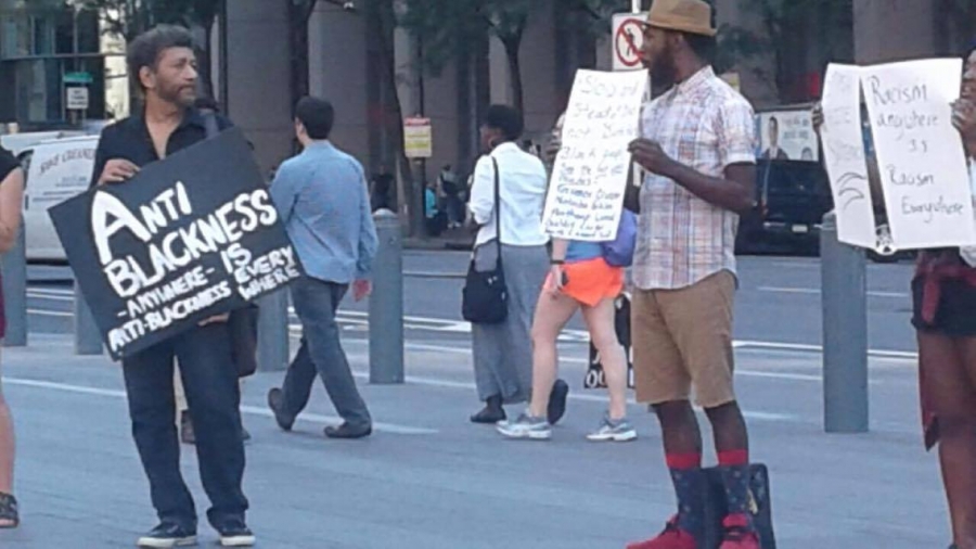 Speaking a second time at the action, he said, “We know that any movement that’s a social justice movement, that’s a movement that is against oppression…needs to address the multiple identities that a person can hold.”