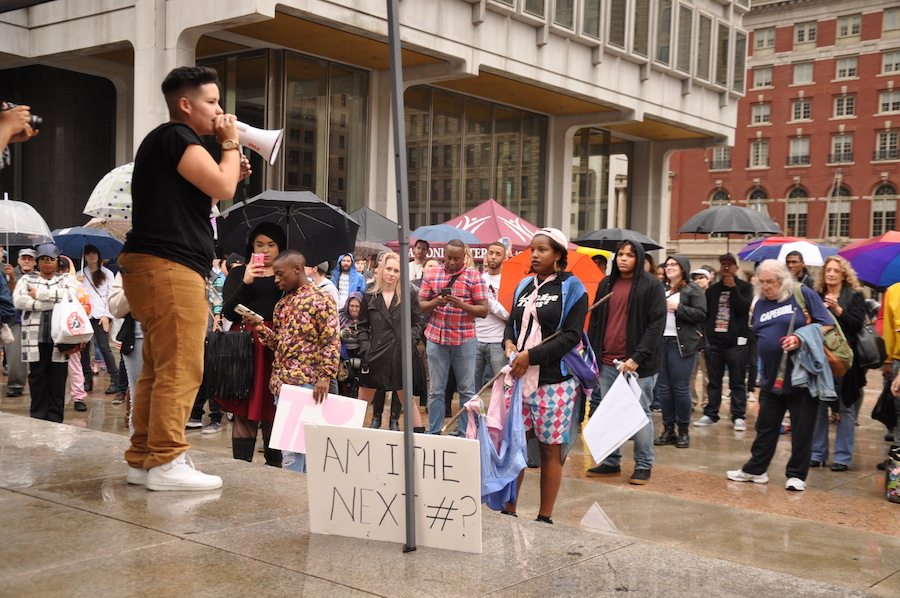 Later, López said, “I want to hear your voices powerful because we are a resilient community. Our history is resilient, and if it was not for black and brown trans women there would be no LGBTQ-rights movement.”