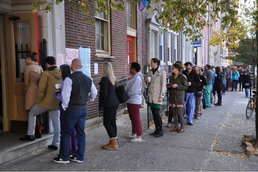 Gregory Walker, vice chair of the Democratic Party in the Fifth Ward, Ninth Division, helped out at the polls at William Way LGBT Community Center and at The Church of St. Luke & the Epiphany. He compared the enthusiasm at the polls to the 2008 presidential election where Obama won the presidency.